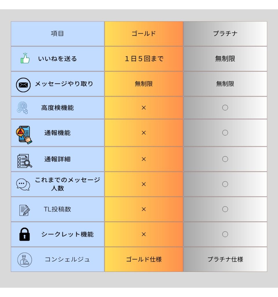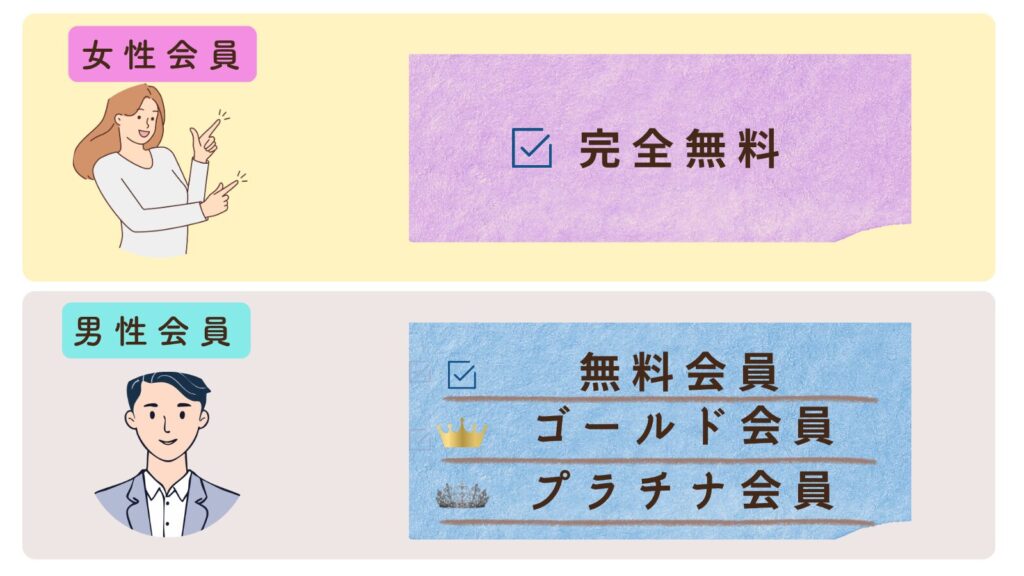 • 男性は無料会員・ゴールド会員・プラチナ会員の3段階