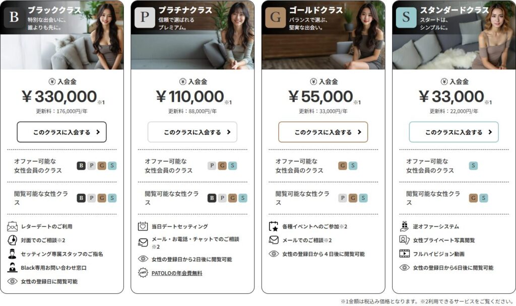「スタンダード・ゴールド・プラチナ・ブラック」といったクラスに分かれており、