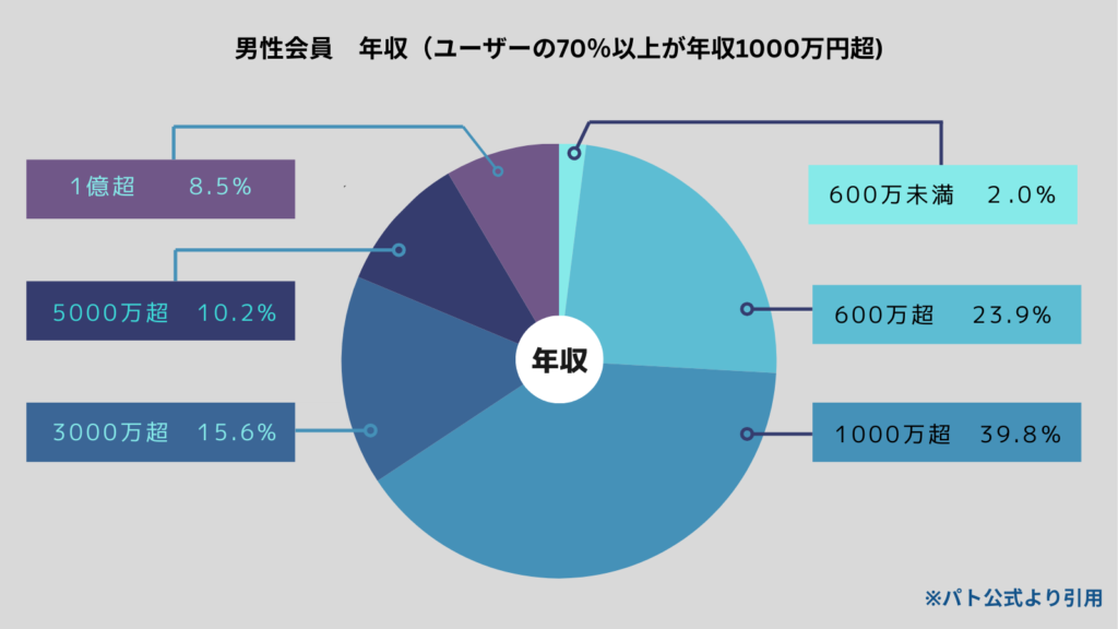 男性会員のおよそ70%以上が年収1000万円オーバー